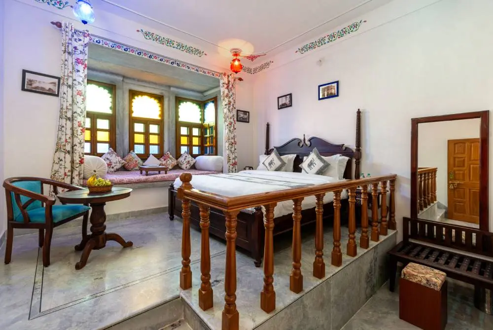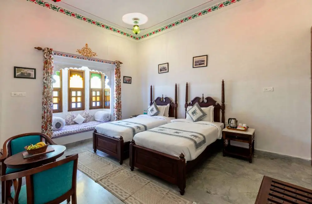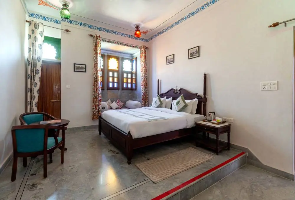 Experience luxury and comfort in our Deluxe Room, where traditional Rajasthani decor meets modern amenities for a peaceful retreat.